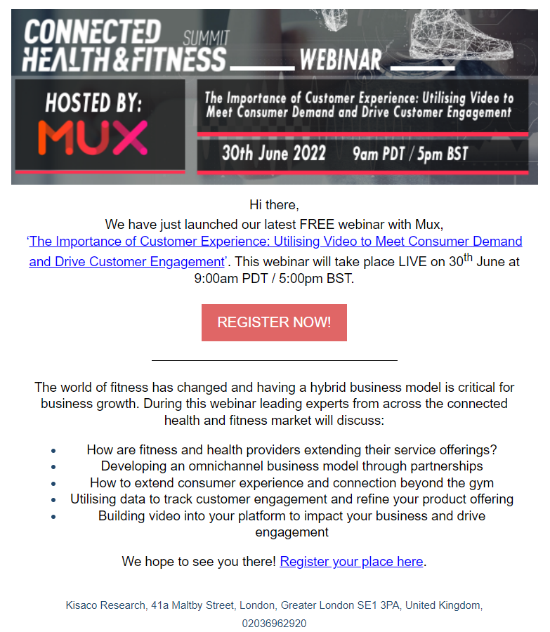 Kisaco Research designed a comprehensive marketing strategy that included targeted email campaigns, social media promotion, and partnership outreach. The promotional assets featured engaging visuals and compelling content that highlighted the topic of the webinar which focused on the importance of customer experience and utilising video to meet consumer demand.