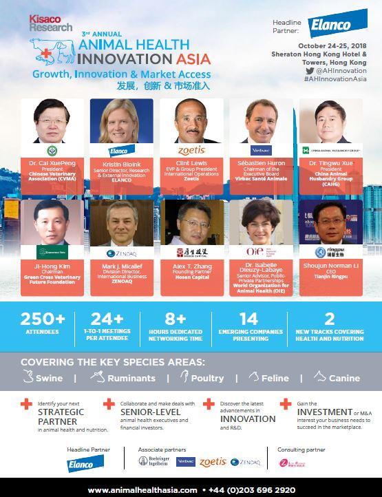 Animal Health Innovation Asia is a premier B2B conference showcasing emerging Animal Health and Nutrition companies, from China and across Asia-Pacific, that are activity seeking financial investment or strategic partnership conversations with large corporate firms.
