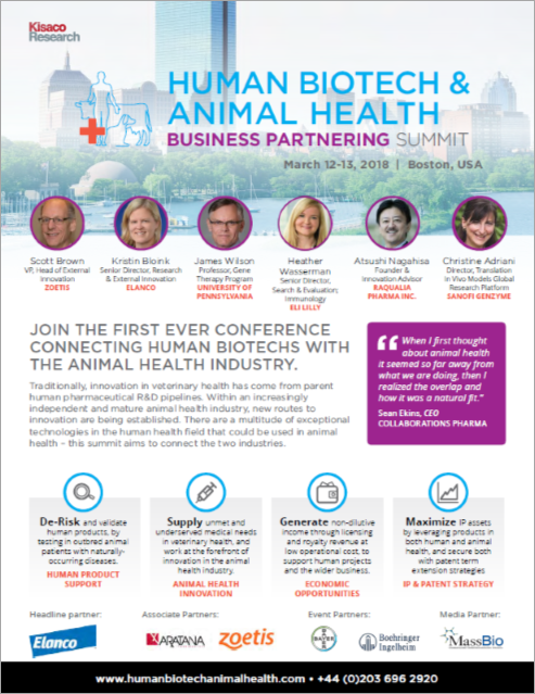 Join the first ever conference connecting human biotechs with the animal health industry.